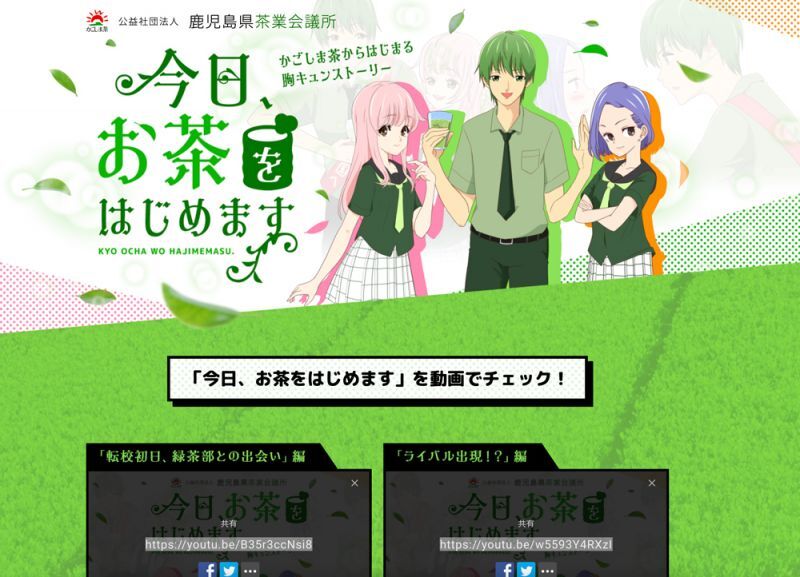 かごしま茶からはじまる胸キュンストーリー 2021年08月13日 かごしま茶のことが、よくわかるアニメです! 「今日、お茶をはじめます 第1話」 「今日、お茶をはじめます 第2話」 «前 次» お知らせ